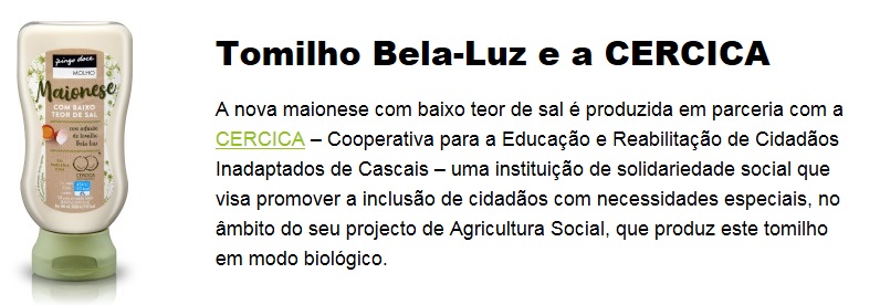 O Tomilho Bela-Luz produzido na CERCICA, proveniente de agricultura biológico é um dos ingredientes da Maionese do Pingo Doce.