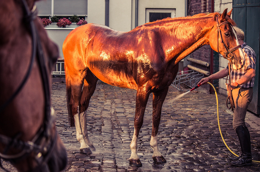 - Aparelha os animais colocando-lhes a sela, os arreios, as caneleiras e/ou ligaduras e a cabeçada;